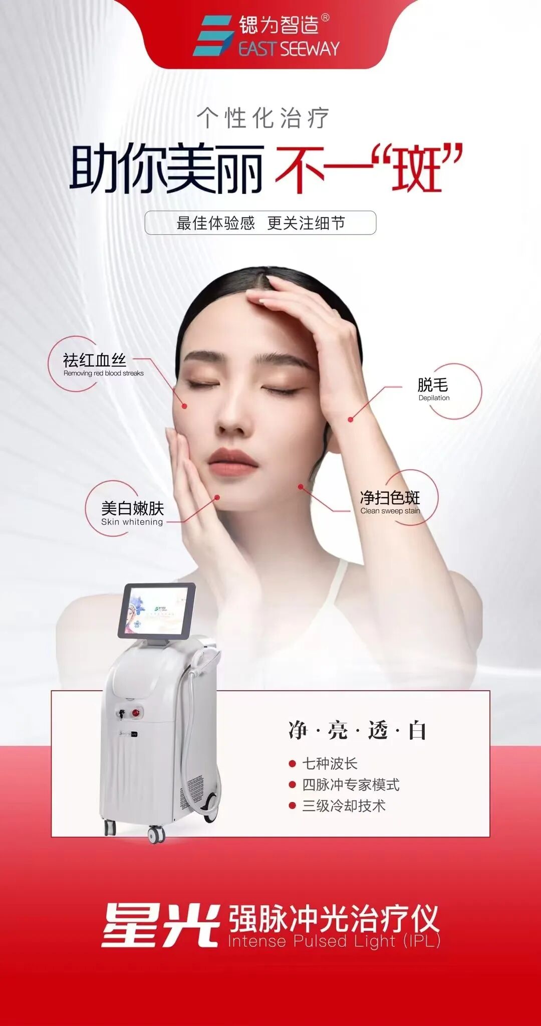 星光强脉冲光针对于红血丝的治疗!发表时间:2024-10-11 14:41 ![]() 在各种美容院或者整形机构,你一定看过这些项目,简直眼花缭乱,相似的项目不同的名字,价格就千差万别,不知道到底哪一项才适合自己。不断地进行错误的尝试导致皮肤非常敏感,今天我们就聊一聊强脉冲光如何改善去红! ![]() 实际上是指的光传播能量的载体,而在美容广告里,我们常常看到的“光子”一词,则不是这个概念,它指代的是“光子嫩肤”技术里作用于你脸上的“强脉冲光”。“强脉冲光”指的是由闪光灯发出的一种按照脉冲模式发射的强光。所以,其实你也可以叫它“脉冲强光”,英文简称是“IPL”。 强脉冲光是一种宽谱光,其波长多为400~1200nm,能够穿透表皮层,直达真皮层,作用于血管和色素团。在治疗红血丝时,强脉冲光能够选择性地作用于扩张的毛细血管,通过光热作用使血管凝固,进而达到减少红血丝的效果。具体来说,IPL的光能被血管内的氧合血红蛋白优先选择性吸收,并转化为热能在组织中升温,当光波的脉宽小于靶组织的热弛豫时间时,血管升温可达到血管的损伤阈值,即可凝固破坏血管,导致血管闭塞退化,并逐渐被显微组织替代而达到治疗目的。 ![]() 星光强脉冲光配有可插拔滤波片,方便我们在操作过程中所出现整个面部需要解决的多数问题,操作中间可根据顾客需要解决的问题更换相对应的滤波片进行对症治疗。针对于红血丝的客户可选择560nm、585nm这两个波段进行治疗,效果更为显著。 更多关于星光强脉冲光的治疗方式,请关注我们公众号,后期不断进行分享。 ![]() |